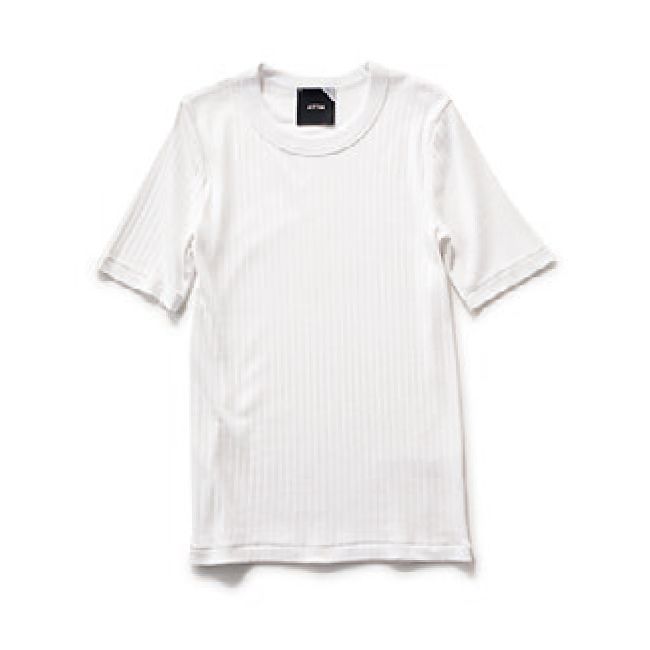 ヘビロテ率No.1の白Tは、カジュアルにもキレイめにも使えるリブで大人の表情に。リブTシャツ¥8,100(エイトン/エイトン青山)