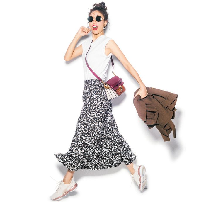 サングラス¥17,000(レイバン/ルックスオティカジャパン)バッグ¥74,000(FURLA/FURLA JAPAN)スニーカー¥9,000(プーマ)イヤリング¥6,500(アビステ)