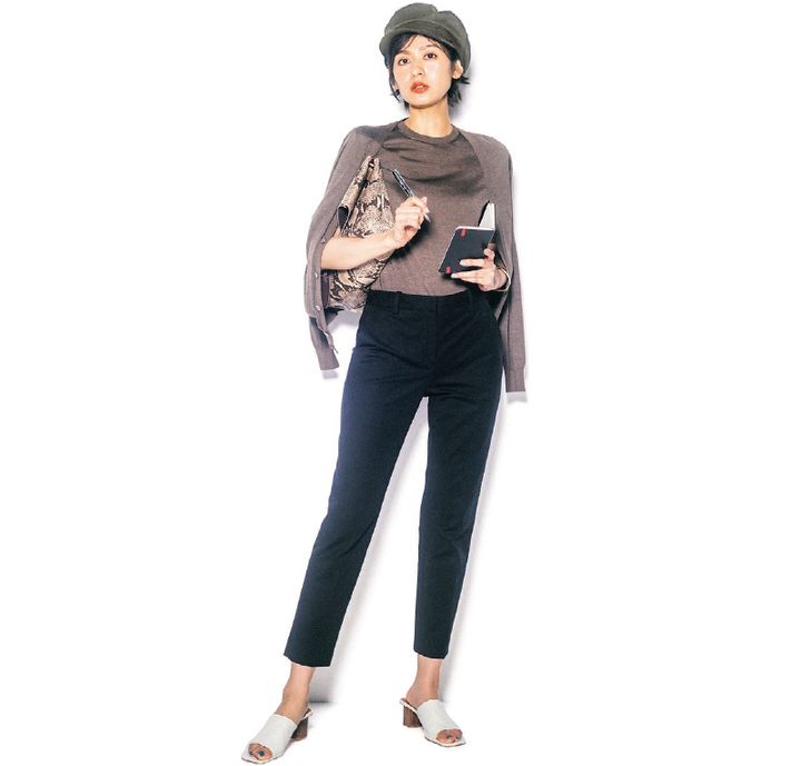 オンオフ着こなしの幅の広さならダントツ! 美脚を約束するベーシックな黒パン。パンツ¥29,000(Theory/リンク・セオリー・ジャパン)