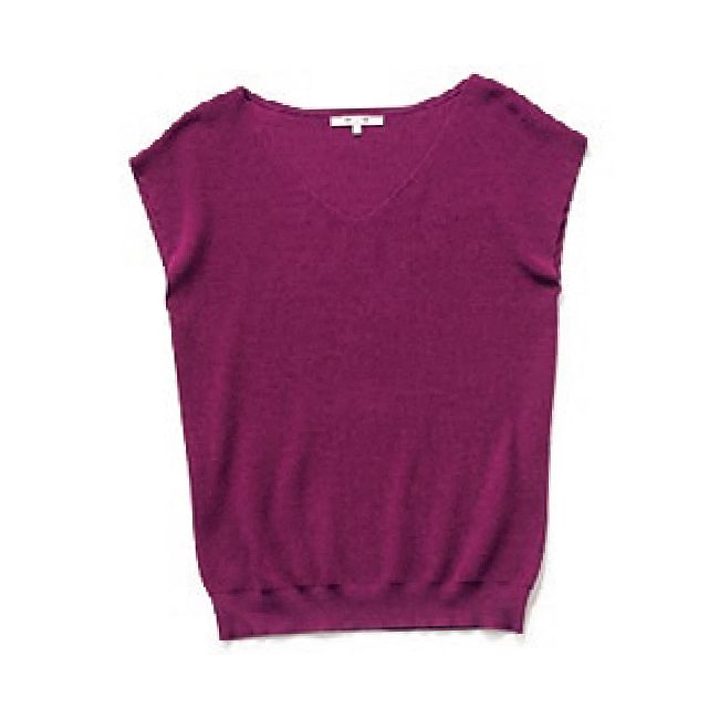 Vの開きがほどよいノースリニットは、トレンド感もある女らしいパープルを。ニット¥13,000(スリードッツ/スリードッツ青山店)