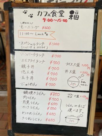 コチラ、福さんのお店の前には、可愛い手書きメニュー。