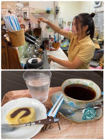 しかし、そのタイミングで、町家のカフェ食堂 福の場所で以前、コーヒー店をされていた方から声を掛けてもらったことから、この広さなら出来るかもしれないと、こちらで新たに再スタート!!看板娘のミキちゃんは、実は、ヒデちゃんの息子さんのお嫁さん。その時に、ミキちゃんにお店を一緒に手伝って欲しいと頼んで、最初は3年の約束が、気付けば7年になっていたと言って、顔を合わせて笑ってました。一緒に楽しく働かれる、この2人の関係がまた凄く素敵なんです!!