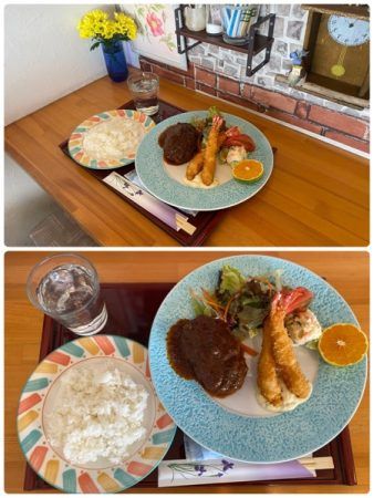 遅めのランチで空腹の余り、エビフライとハンバーグの両方味わえる、スペシャルランチをチョイス‼︎