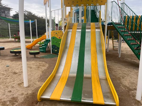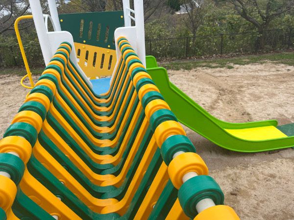 幅が広いすべり台。兄妹や親子で揃って滑ることができます。