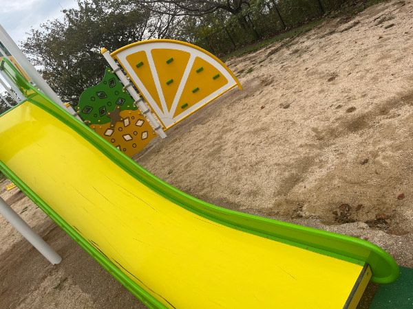 完成した様子を目にするたびに実物を見たいと思っていたほどです。 柑橘をイメージにした遊具で、ビタミンカラーが色鮮やかで可愛いですよね。