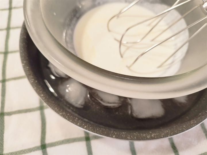 温度を下げることで、分離を防ぎ、キメが細かく、なめらかなクリームになります。