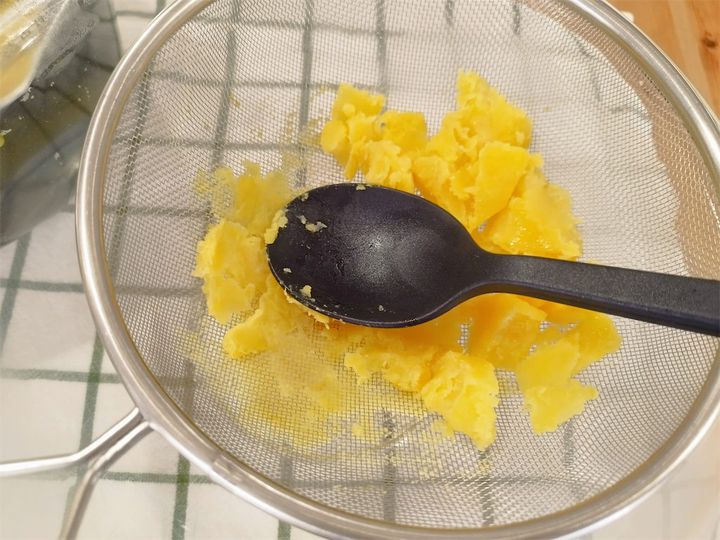 3. 2のさつまいもを、熱いうちに裏ごしする。
