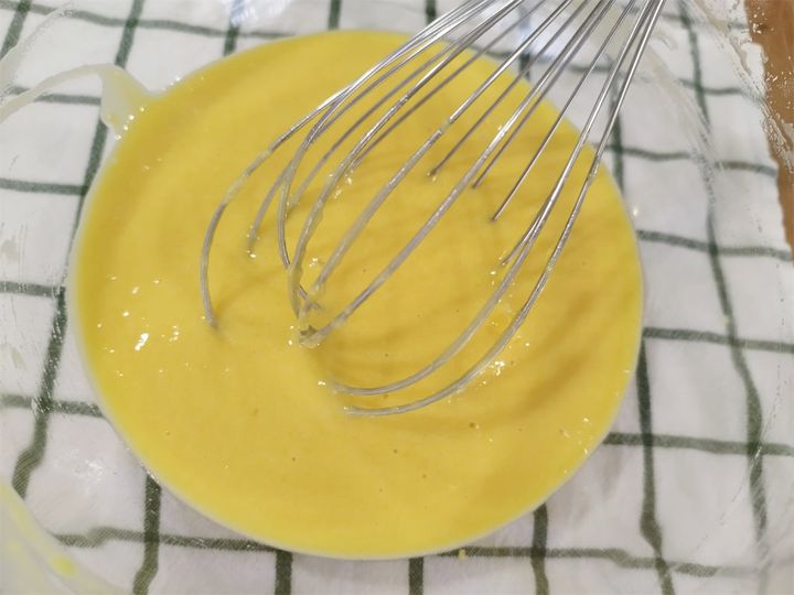 でも、オレンジジュースを入れたことで、濃い黄色のプリンに仕上がりました。