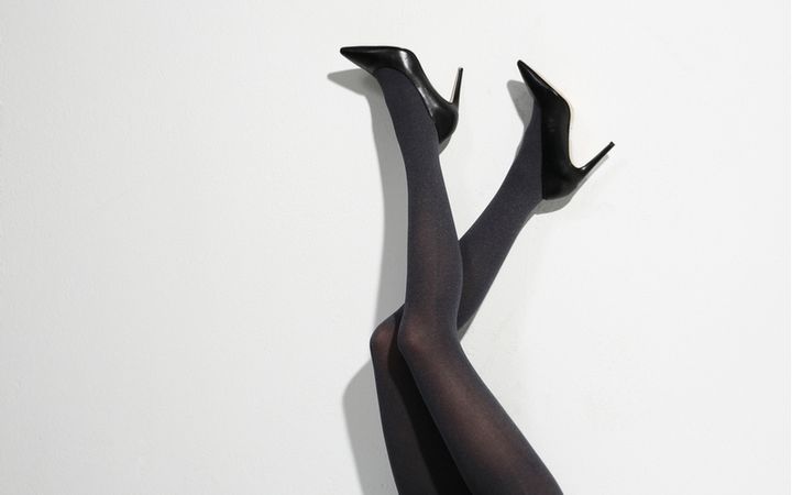 また、着痩せ効果を狙ってか、まれにブラックタイツを着用している人をちらほら見かけますが、これもNG! もちろんベージュであってもタイツを選ぶのはやめたがほういいでしょう。