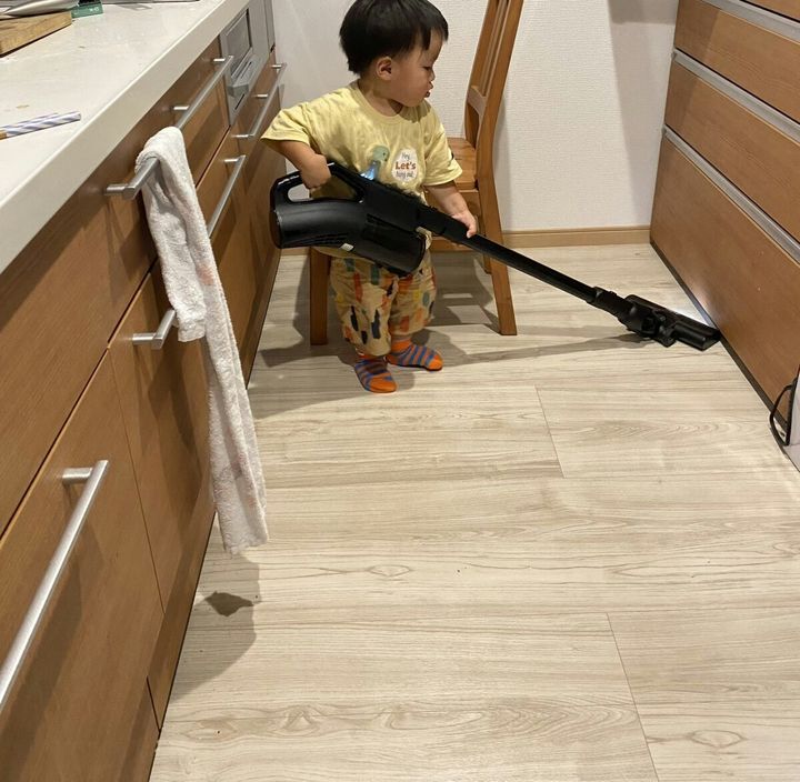 自分の体よりも大きな掃除機を持って掃除に励む息子さん。保育園から帰ってきて疲れているはずなのに、毎日のように掃除機をかけてくれるなんて驚きですし、その姿はまさに働き者!小さな体で一生懸命掃除機をかけている姿を見たら、1日の疲れも吹っ飛びそうですね。