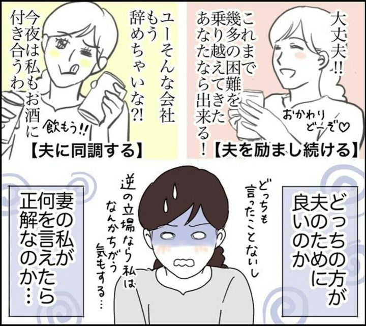 皆さんは、パートナーが仕事で追い詰められてつらそうにしていたら、なんと声をかけたいと思いますか?励ますべきなのか、賛成するべきなのか、とても迷うことですし、先のことを考えると不安なことですよね…。