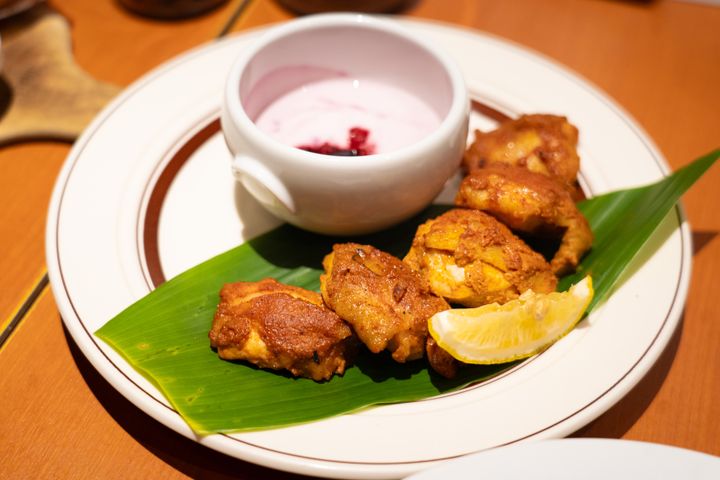 チキンをヨーグルトにつけると、ピリッとしたスパイスと、ヨーグルトベリーソースの甘酸っぱさがとてもよく合っていて、食べるたびに新しい発見がありました。辛さと酸味が絶妙に調和していて、どんどん食べたくなる味わいです...!