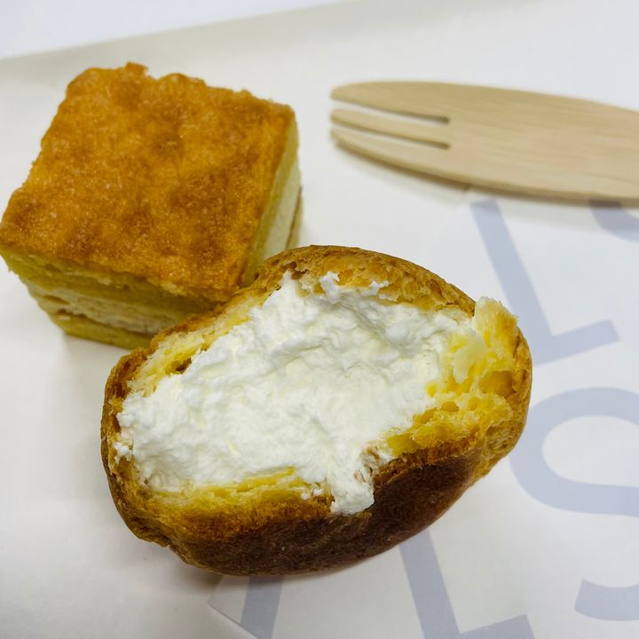 薄めのシュー生地にたっぷりのミルククリームが入ったフワッと軽いシュークリーム。