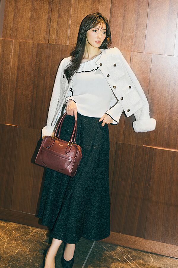 ジャコット¥12,980/tocco closet ニット¥7,480/MERCURYDUO スカート¥8,250/オペーク ドット クリップ バッグ¥209,000/J&M デヴィッドソン(J&M デヴィッドソン カスタマーセンター) シューズ¥13,200/アルテミス by ダイアナ(アルテミス by ダイアナ アーバンドック ららぽーと豊洲店)