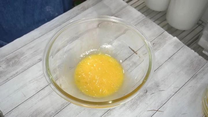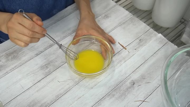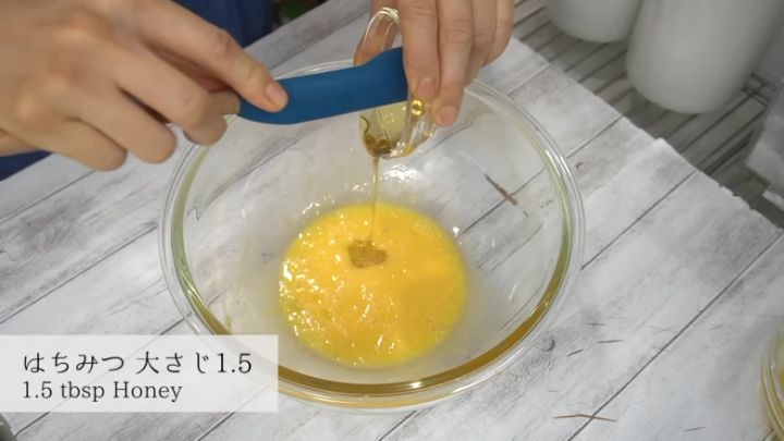 溶いた卵にはちみつを加えて、よく混ぜます。