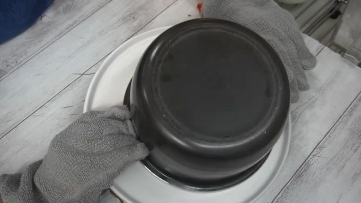 炊飯器の上に大きめのお皿をかぶせてひっくり返します。手が火傷しないように、ミトンなどを使うのを忘れずに。