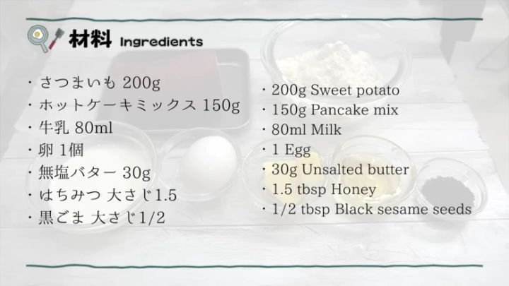 では、さっそくさつまいもケーキの材料からチェックしていきましょう!