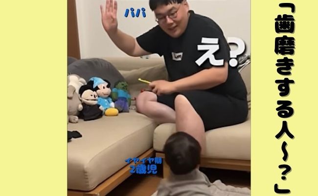 「歯磨きする?」パパがイヤイヤ期の2歳児に聞くと…まさかの理由で大よろこびで「はーい」一体何が?