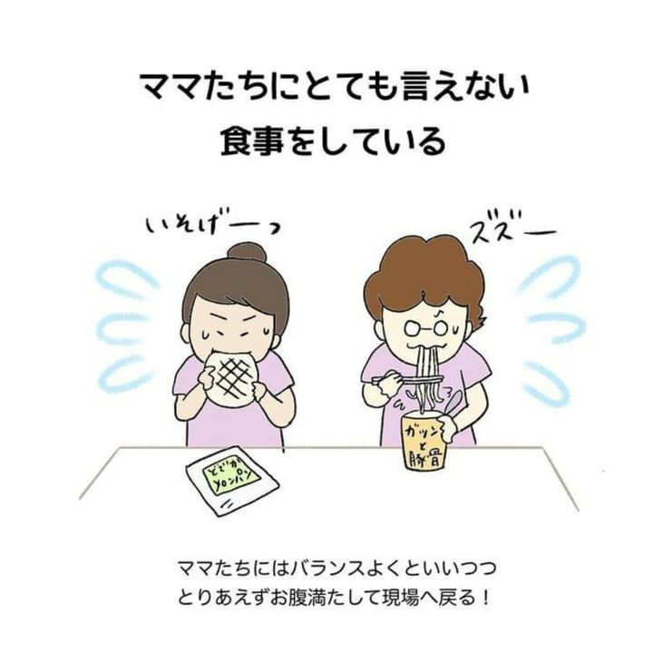 赤ちゃんのためにママには食事を指導する立場でも、自分の食事は菓子パンやカップ麺…。生まれてくる赤ちゃんは待ってはくれませんし、時間を削って赤ちゃんを取り上げてくださる助産師さん、先生には感謝ですね。