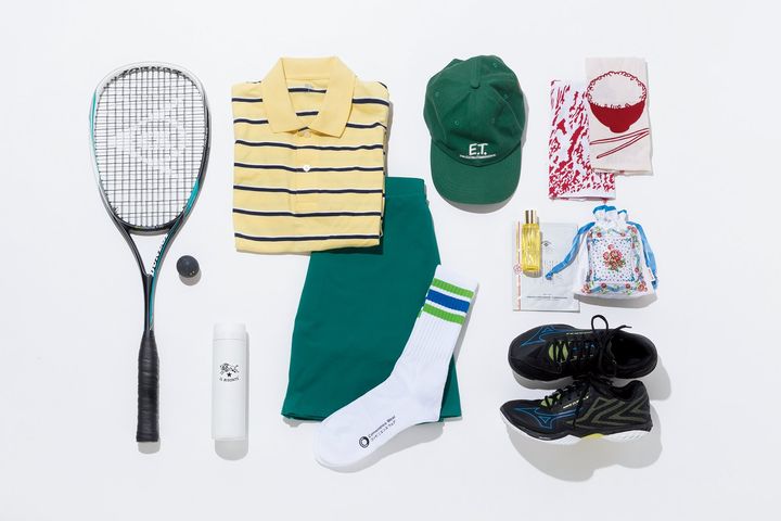 週に1~2回、仕事前に運動。上記の他に右の運動用グッズを、ラケットバッグにイン。シャワ