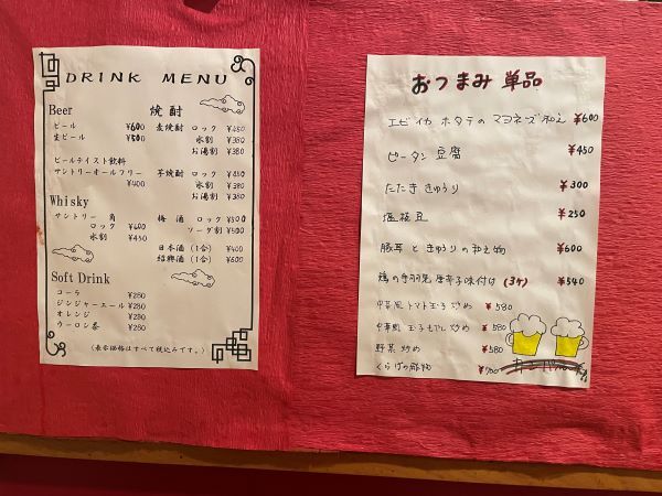 それでも食べたりない食いしん坊には、おつまみ単品もありがたい設定です。 最上段の「エビ イカ ホタテのマヨネーズ和え」は、何と魅力的なメニューなんでしょうか。