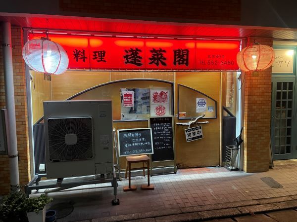 大通りから入った先のビル1階に、焼き鳥屋さん、スペイン料理屋さんと並んで中華料理の「蓬莱閣」があります。 日本、欧州、中国と、僅かの間隔で世界旅行が楽しめます。