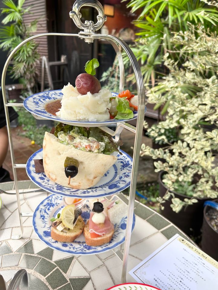 美しいお庭のカフェでアフタヌーンティー