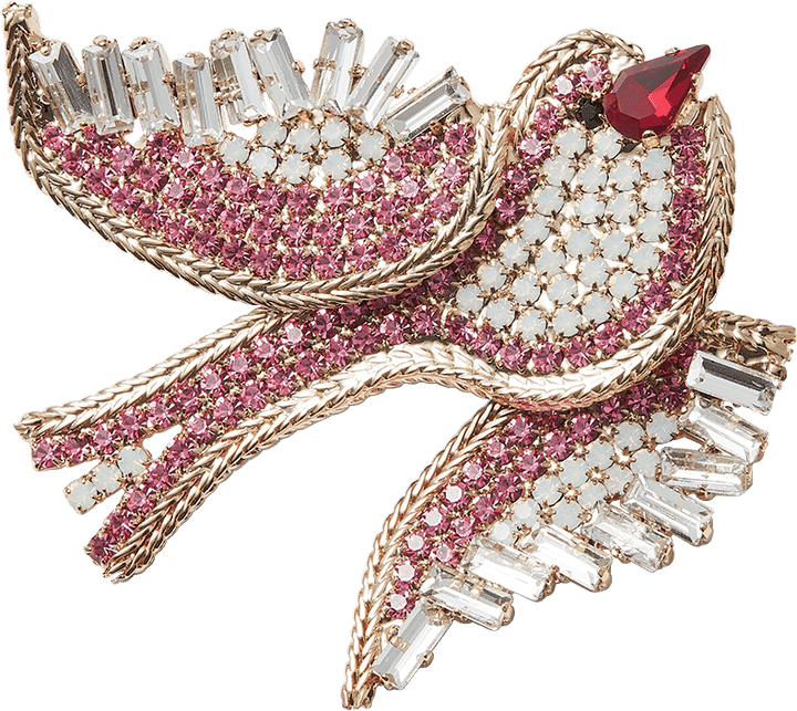 小太りな小鳥の愛らしさがたまりません。ブローチ[BR×YGP×クリスタル]¥11,000(LisaC/ピモンテ)