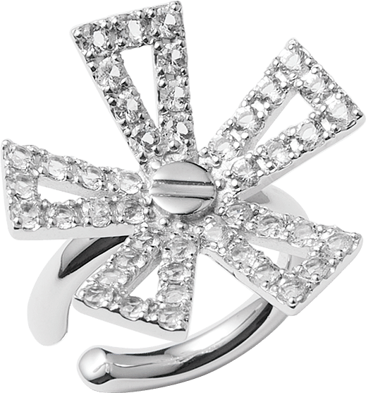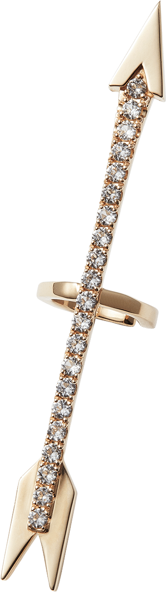 ボリュームも存在感もあるので、ショートカットの方に特にオススメ。アローイヤーカフ[K10YG×ホワイトサファイア]¥107,800(アウラ ジュエリー)