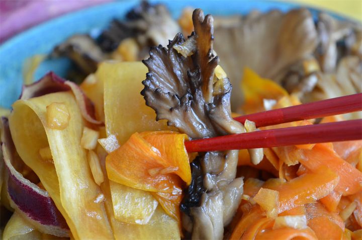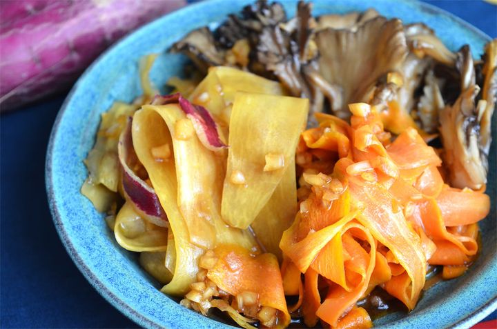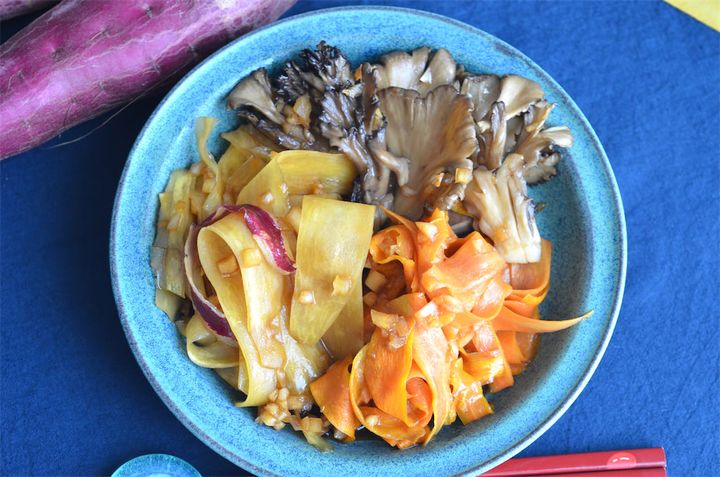 3. ピーラーで時短&簡単♡「さつまいもと舞茸の揚げびたし」作ってみた!このヒラヒラ感新しッ♪【農家直伝】