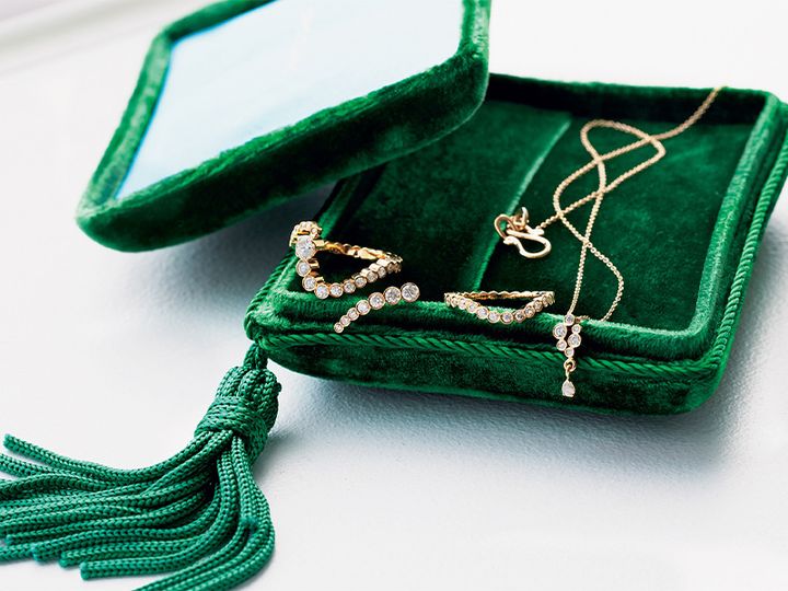 リズミカルな大小の石使いや、波のような美しい曲線がアイコニックなデンマーク発のジュエリーブランド。高揚感を後押しする別売りのロマンチックなジュエリーボックスにも注目。