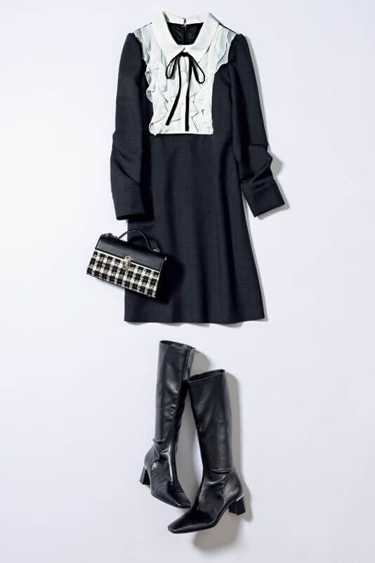 ホリデーシーズンに向けてこの冬、大人女子に推したい今っぽさのあるミニ丈コーデ。品格あるえり付きワンピで一発できめるか、リラクシーな甘さが魅力のざっくりニットに合わせるか、お好きなテイストで是非トライしてみて!