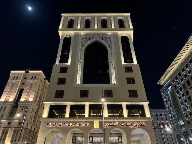 一方で、預言者のモスクはムスリムしか入れないので、建物の上からでも見ることができるなら見てみたいという方もいると思います。そんな方に人気なのが、Pullman Zamzam Madina。周辺ホテルの中では高級ラインなので、清潔度は抜群だと思います。