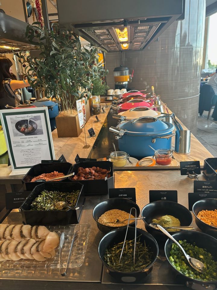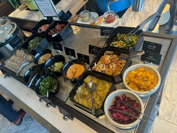 お茶漬けやお味噌汁、お漬物、さらに小鉢系も充実してて和の朝ごはん派にも嬉しい内容!