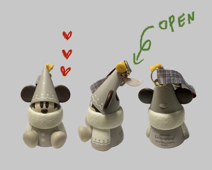 出典:MOREケースはシリコンではなく硬いプラスチックの感じで帽子の後ろの部分が開きます☀︎スナックケースとしてはもちろんキーホルダーとしても可愛いですし自立するのでインテリアとしても◎