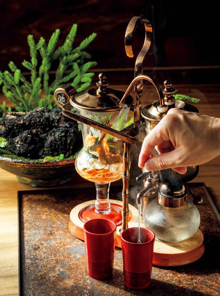 越冬にんじんなどの皮や芯を原料にし、サイフォンで野菜だしを抽出