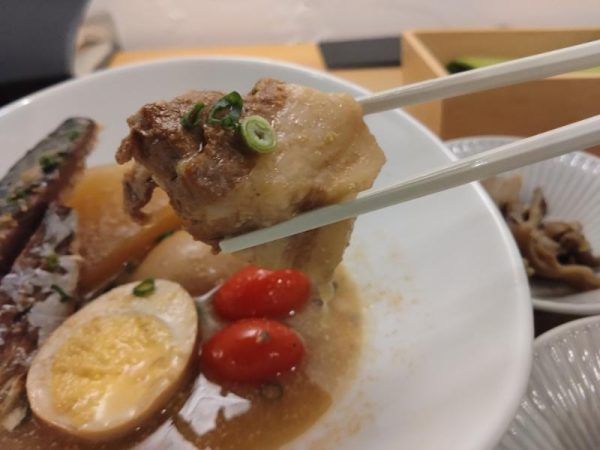 ホロホロととろけて絶品でした! 器に盛られているゆで卵などぜんぶが、ぬか炊き。