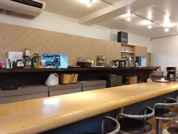 ひとりでも問題なくくつろげる十分な空間。 カウンターもあります。カウンターの上には、前身の老舗喫茶店「喫茶いち」の看板が、風格もって店内を見守ってくれているようです。