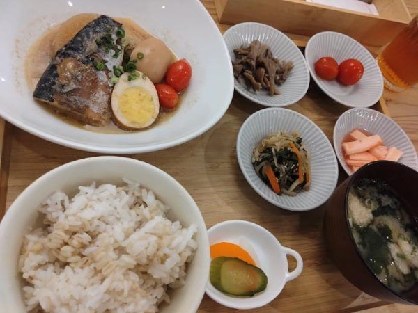 ICHIのぬか炊き定食、いえ「ぬか炊き和定食」はメインのぬか炊きの食材が魚には限らないのも特徴で、鶏肉、豚バラなどがおしゃれな器に上品に、根菜などとともに盛られています。小鉢たち5種(うち1品は糠漬け)と雑穀米に、これまたお味噌汁(これも発酵食品ですもの)がついて発酵パワーで元気になれるメニュー!