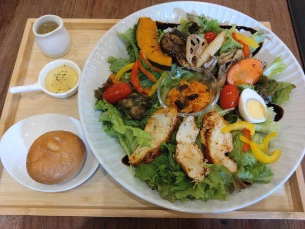 ランチの魅力3つ目は、サラダランチ。メニュー名としては「タンドリーチキンと旬野菜グリルのサラダランチ」。