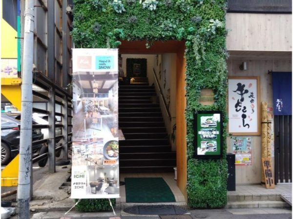 曲がって30秒くらい歩いたら、左手にICHIが見えます!緑のゲートが目印です。