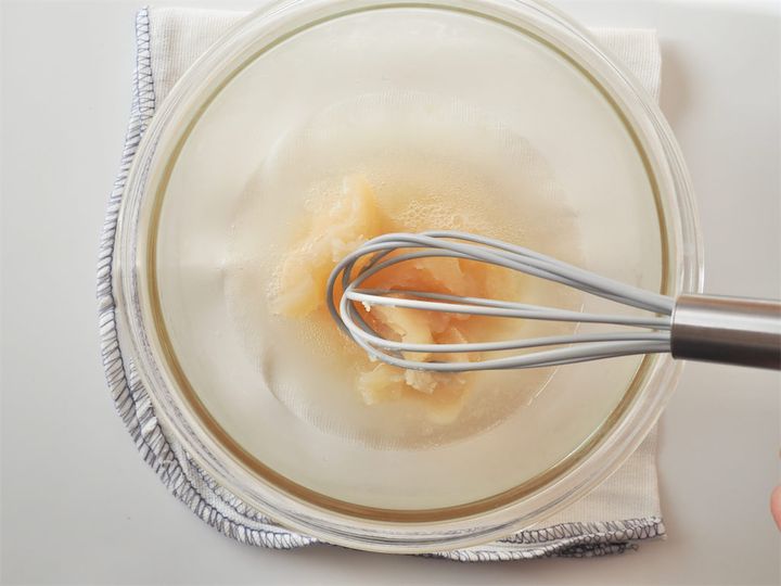 ミキサーやブレンダーを使うと早いとのことだったので、今回はブレンダーを使用しました。30秒もしないで、なめらかになりましたよ!