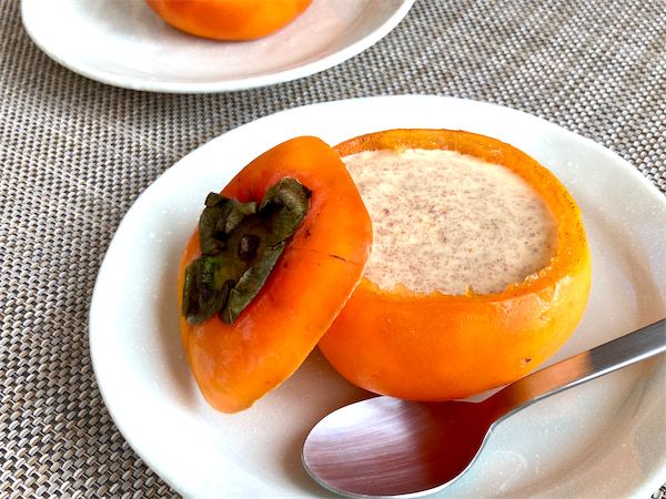 3. 【まさかのスーパーカップと柿だけでプリン!?】混ぜて冷やすだけ「スーパー柿プリン」作ろう!柿の器が♡