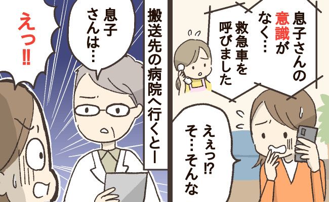 夫からのメッセージも確認すると「息子が幼稚園でけいれんした。すぐ帰る」との文面が……。慌てて幼稚園に電話をすると、息子のけいれんはおさまったが、熱があり意識がないこと、そして救急車を呼んでいるとのことでした。