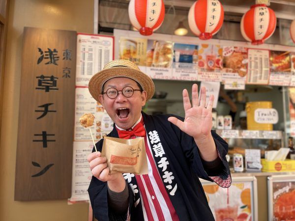 次に向かったのは、浅草一美味しいという唐揚げ屋さん「東京浅草チキン」です。名物店長のハッピーさんが迎えてくれる懐かしい味わいの唐揚げが大人気!