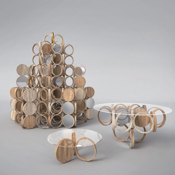 ツリーに使用している木材、ナラ・セン・ホオ・クルミ・イタヤカエデは日本の森から調達したもの。それぞれのツリーから各1点ずつ作られる世界で一つだけのマスターピースは、サイレントオークションで販売されます。また、家具販売の収益の一部は、難病と闘う子どもたちの夢を叶えるボランティア団体、公益財団法人メイク・ア・ウィッシュ オブ ジャパンに寄付されます。