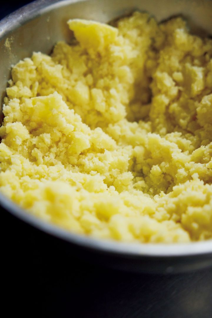 じゃがいもの粗熱を取りながら水分をとばす。これでマヨネーズがよくなじむし、ほくほくの仕上がりに!
