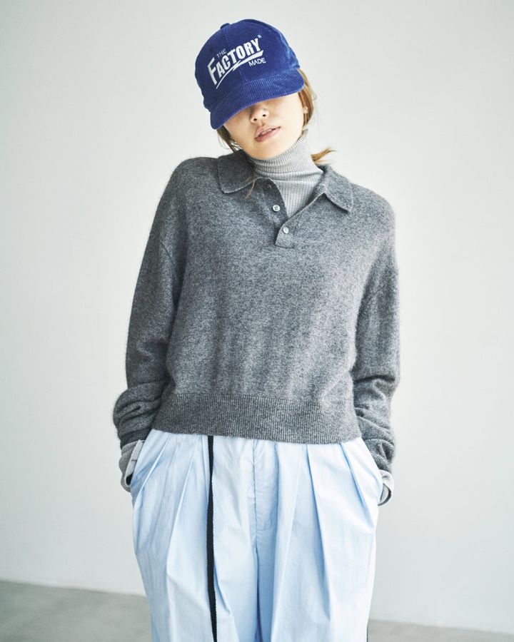 1枚でキマるのは百も承知ですが、レイヤードしてみるとまた新しい風が! このとき、タートルネックとポロを同じトーンで揃えると上手くいきます。襟付きゆえに、きちんと感があるので、キャップにラフなパンツといったカジュアルなスタイリングにもバランスよく対応。