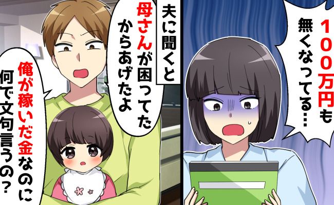 しかし、さらに娘の将来のために貯めていた100万円を、夫が勝手に義母へ渡していたことも発覚。義母に返金を求めると、すでに借金返済に充てたと言うではありませんか!