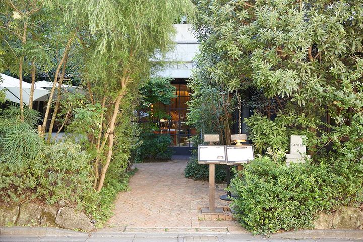 「GENTLE」は、東京メトロ表参道駅から徒歩約6分、国際連合大学のちょうど裏手あたりの駅前の喧騒から少し離れた場所にあります。外観の大きな店構えと緑が生い茂った庭は、「ここが寿司店?」と不思議に思うほど。それもそのはず、こちらのお店は、イタリアンやスペイン料理を織り交ぜた地中海料理と寿司という、まったく別ジャンルの料理を楽しめる店なのです。